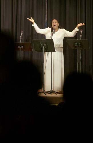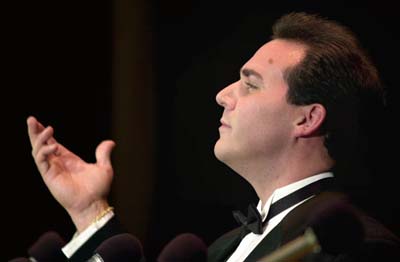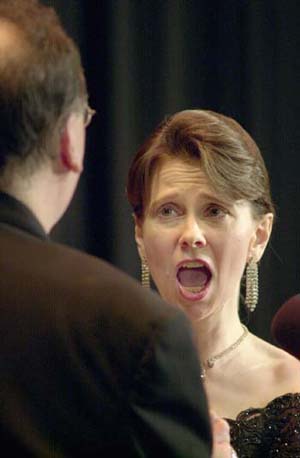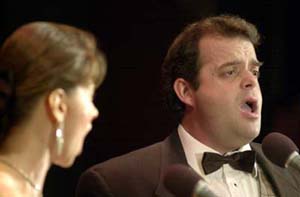 Madison - "Opera Under the Stars" the last of the Florham Park Gazebo Concert Series, was held at Madison H.S. due to rain. Those who made it through the rain were treated to a marvelous performance by members of OMTI ( Opera Music Theater International). (top) Soprano Genya Muzyczka singing Silver. (right) Baritone Adelmo Guidarelli, performing Eri Tu.