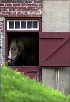 Robert Verrinder, of Mount Arlington; pauses for a moment before he finishes his chores. (right) Calvin, a draft horse takes a peek out of the barn.