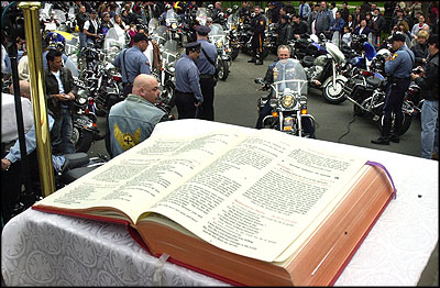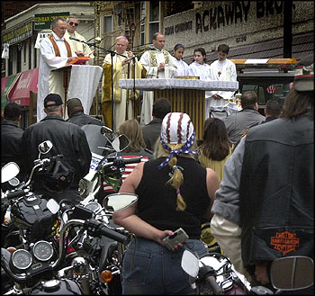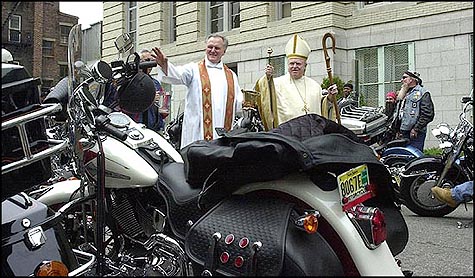 Paterson - Sunday May 4, 2003 Msgr. Mark Giordani, rector of St. John's Cathedral held his 34th annual Motorcycle Mass and Blessing. (above