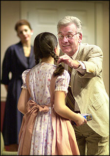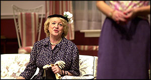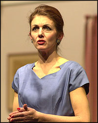 (above) Mrs. Daigle (Bridget Burke Weiss, right) giving Christine Penmark (Liza Harris, left) a piece of her mind. (left)