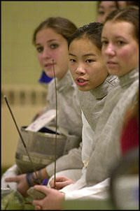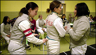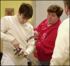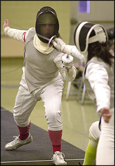 |  | Denville - Morris Knolls High School hosted sister school Morris Hills in fencing, on Thursday January 17, 2002. (above left)