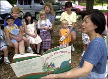 Denville - Children's Librarian Carol Hsia, reads "Over in the Meadow", to the children.