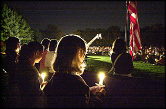 On Thursday October 11, 2001 Pequannock held a candle light vigil for the victims and families of the terrorist attacks on our country that occurred September 11 that has since changed our country forever. About 800 people gathered at Greenview Park Thursday night to share their love for humanity and their country.